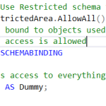 - La función es enlazada con los objetos que se usen dentro de la función (SCHEMABINDING), lo que significa que las tablas subyacentes no permitirán cierto tipo de cambios (como borrar las columnas que están siendo usadas en la función.